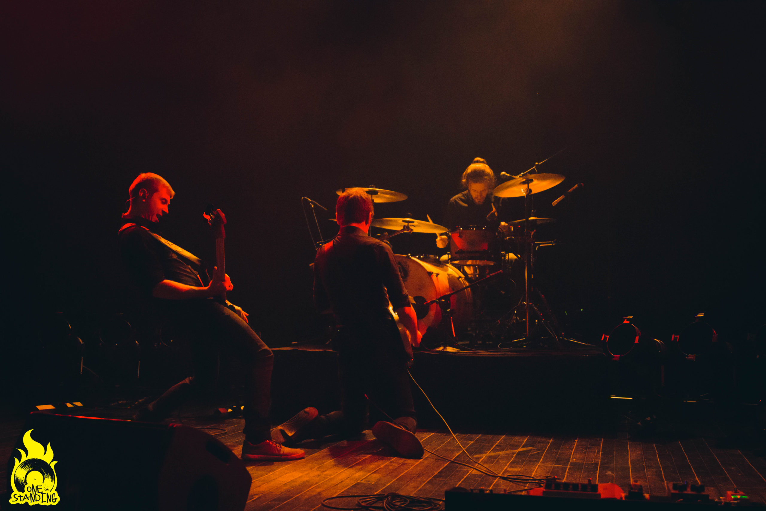 Alors là… Si l’on m’avait dit quel genre de groupe j’allais voir ce soir… Peu de temps avant leur entrée sur scène, du monde se presse pour installer les instruments, les lights, etc. Des projecteurs entourent les musiciens en un demi-cercle, comme pour les regrouper.