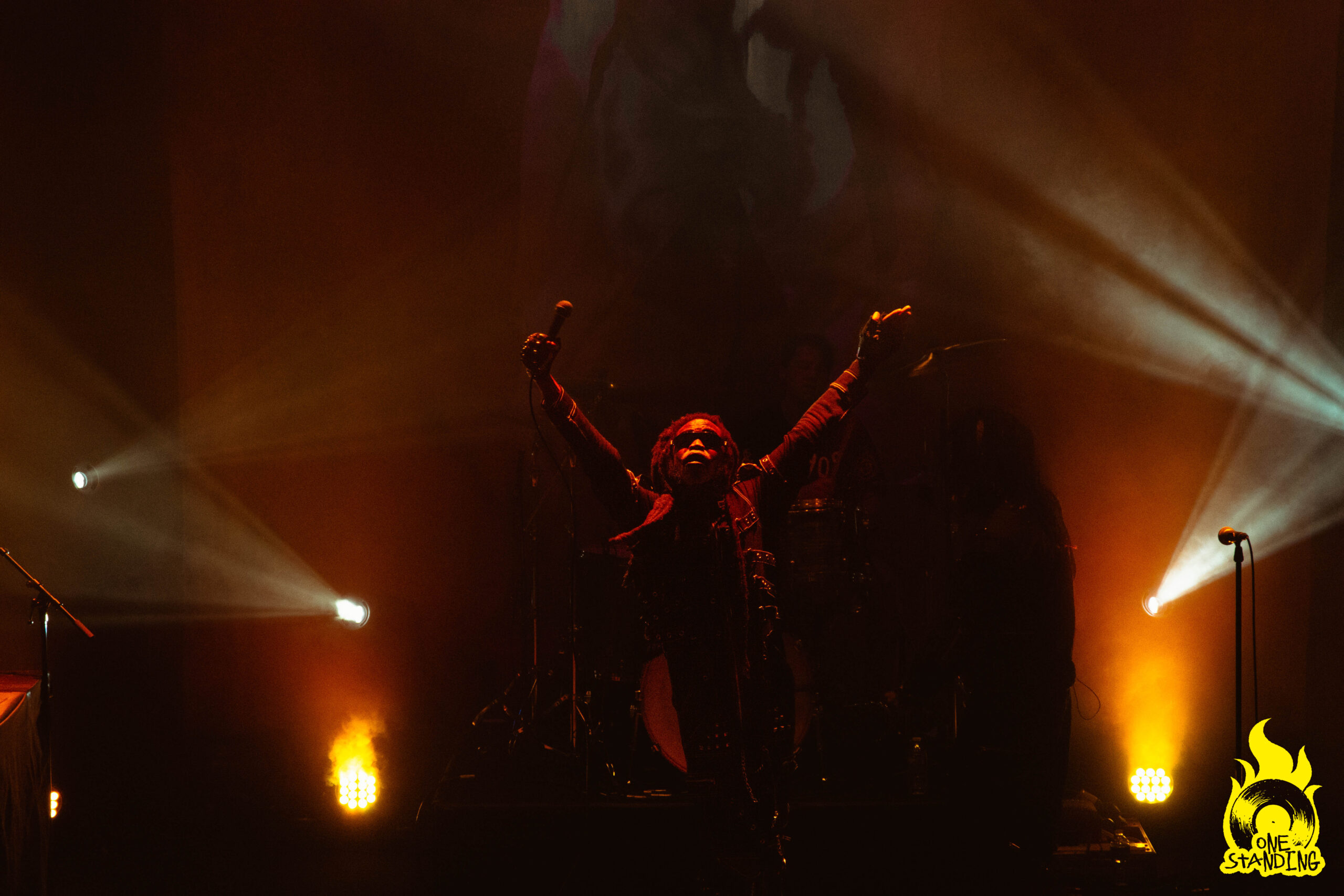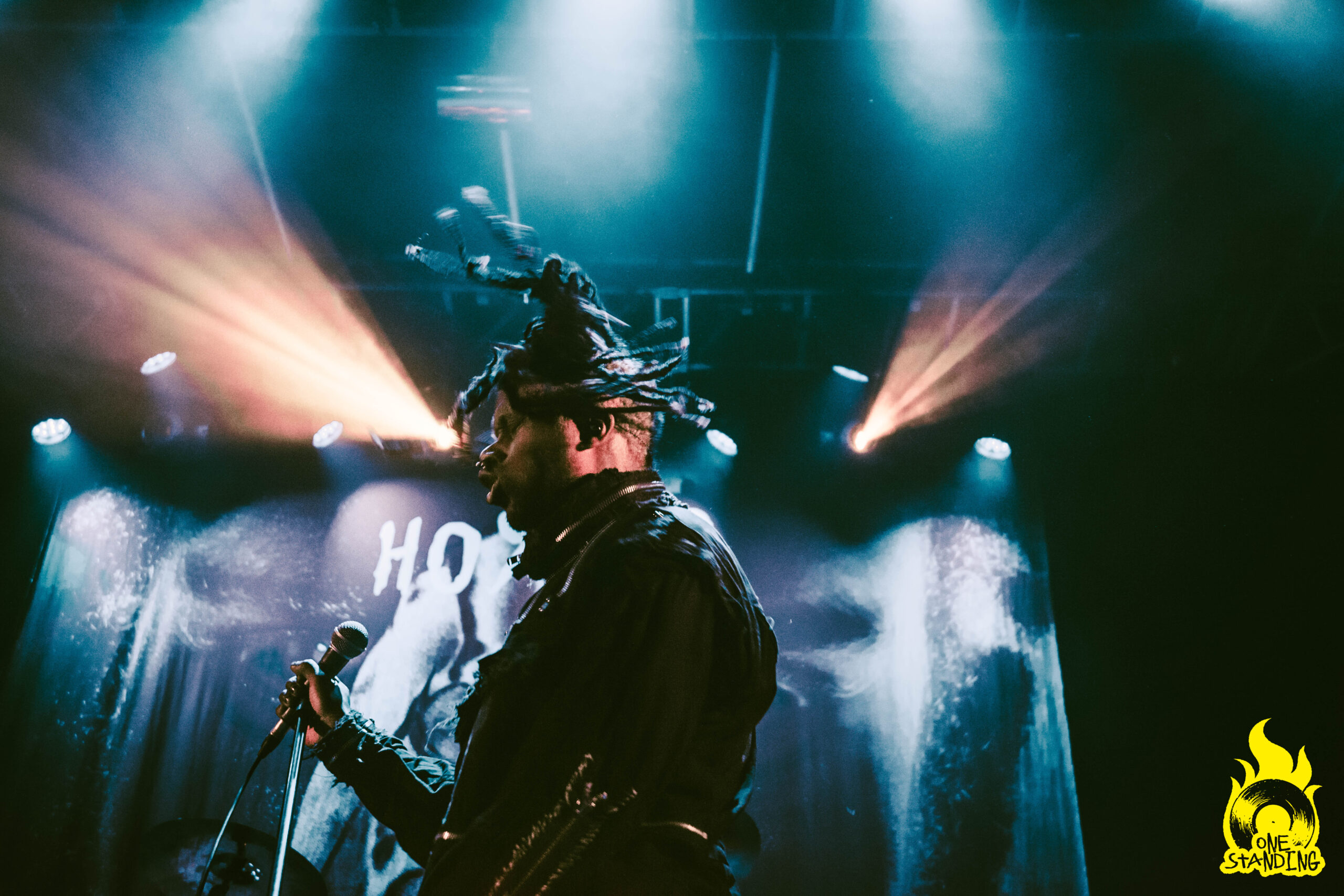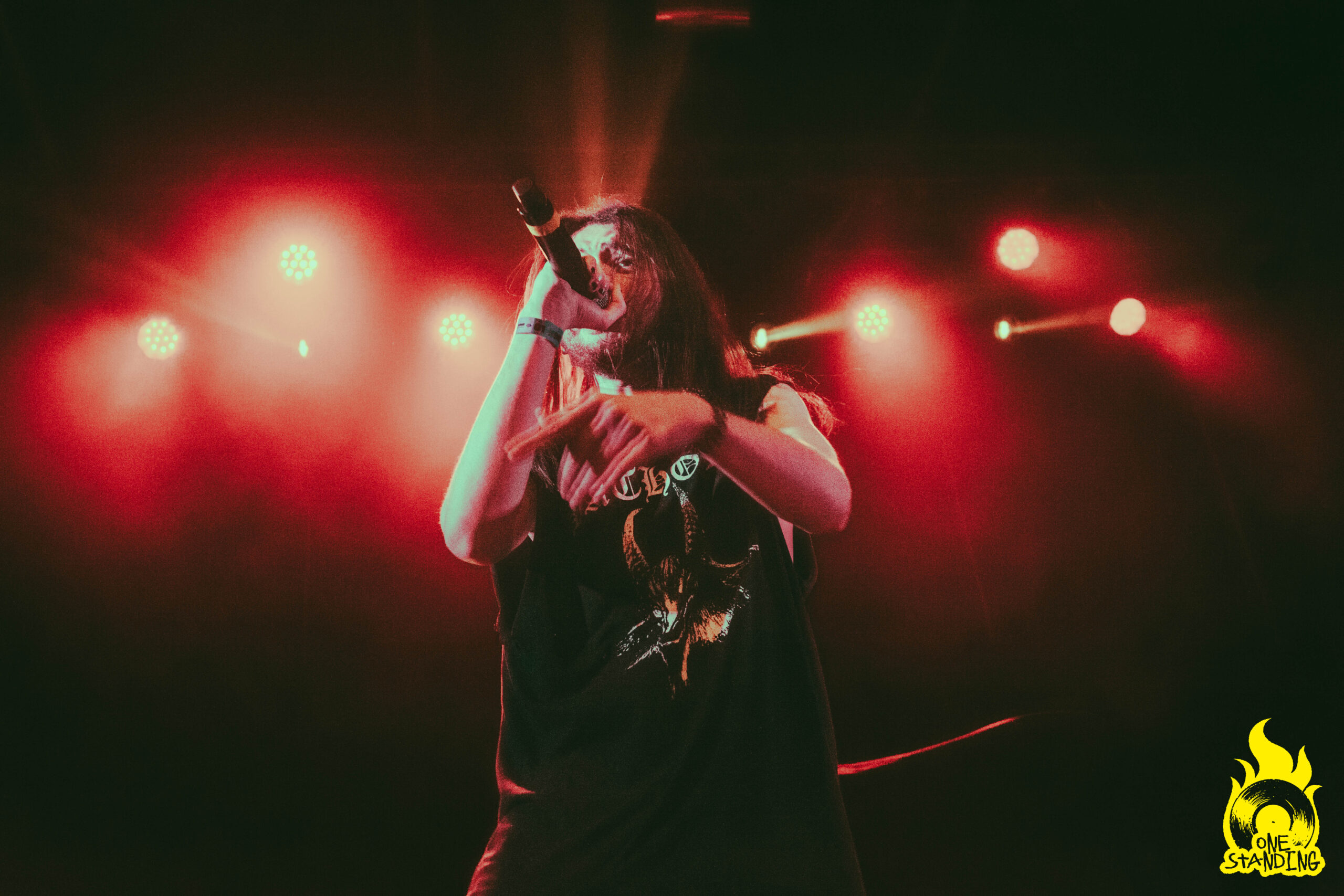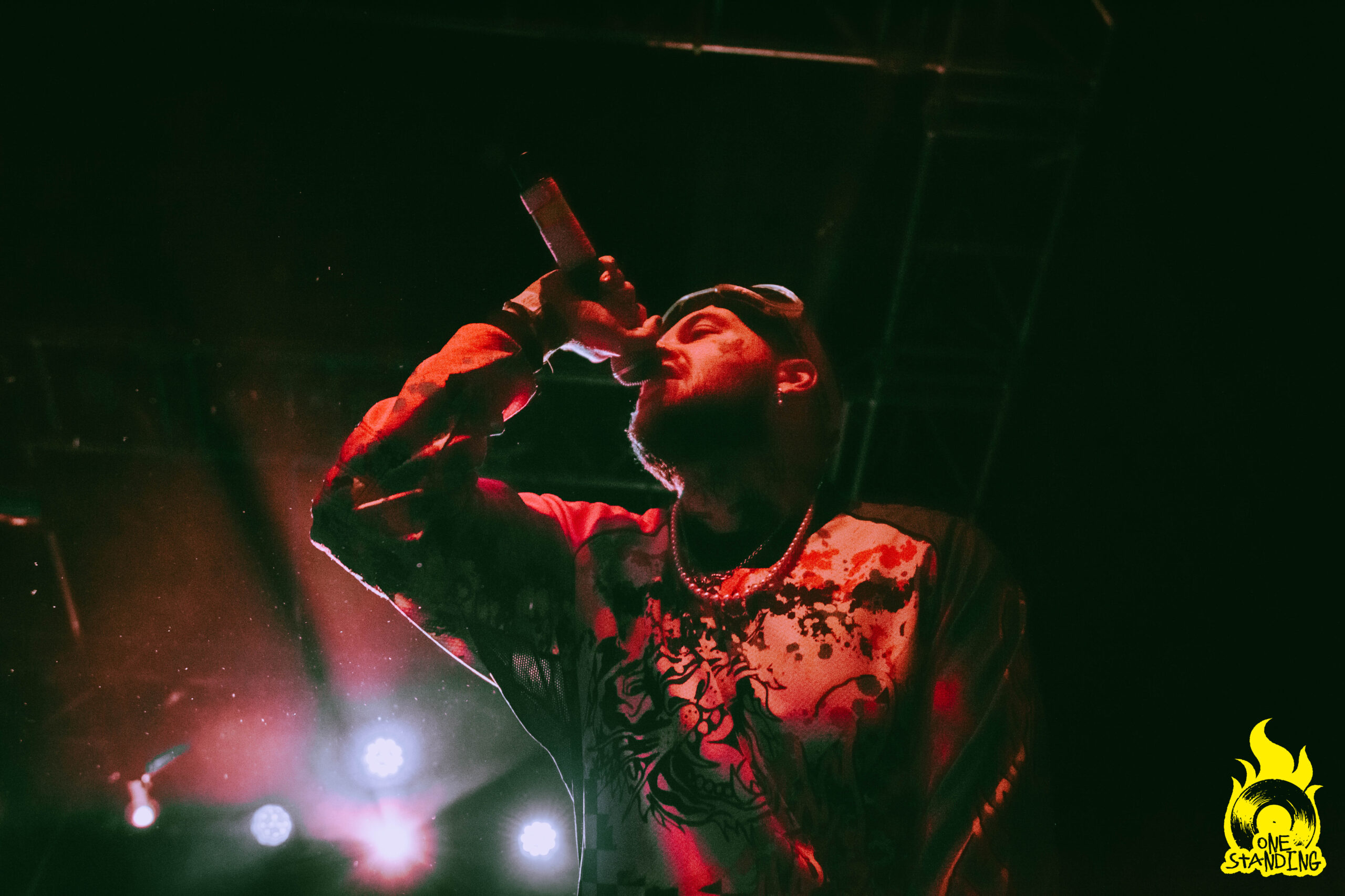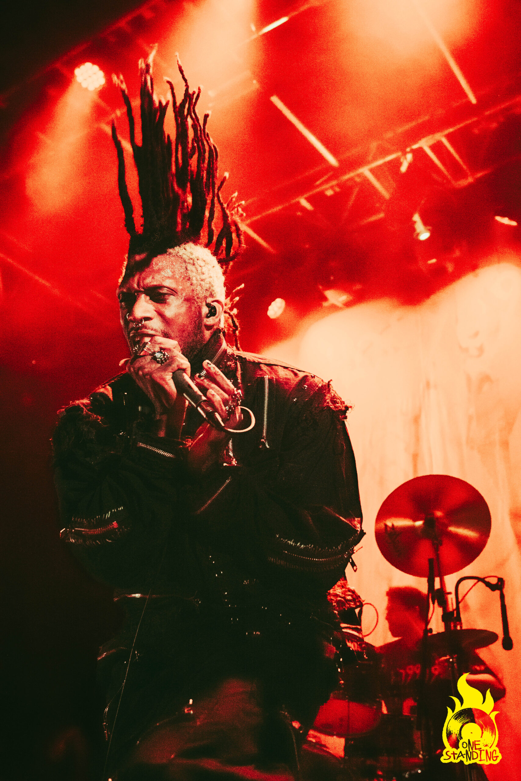 Affublé d’un costume aux allures horrifiques, theOGM débarque sur scène. Une toute petite lumière éclaire son visage maquillé. Si le groupe est souvent associé à Rob Zombie par ses visuels macabres, le portrait qui se dessine dans la pénombre est d’un niveau supérieur. Le multi-instrumentiste est ensuite rejoint par le chanteur Eaddy et le batteur Brandon Pertzborn (Black Flag).