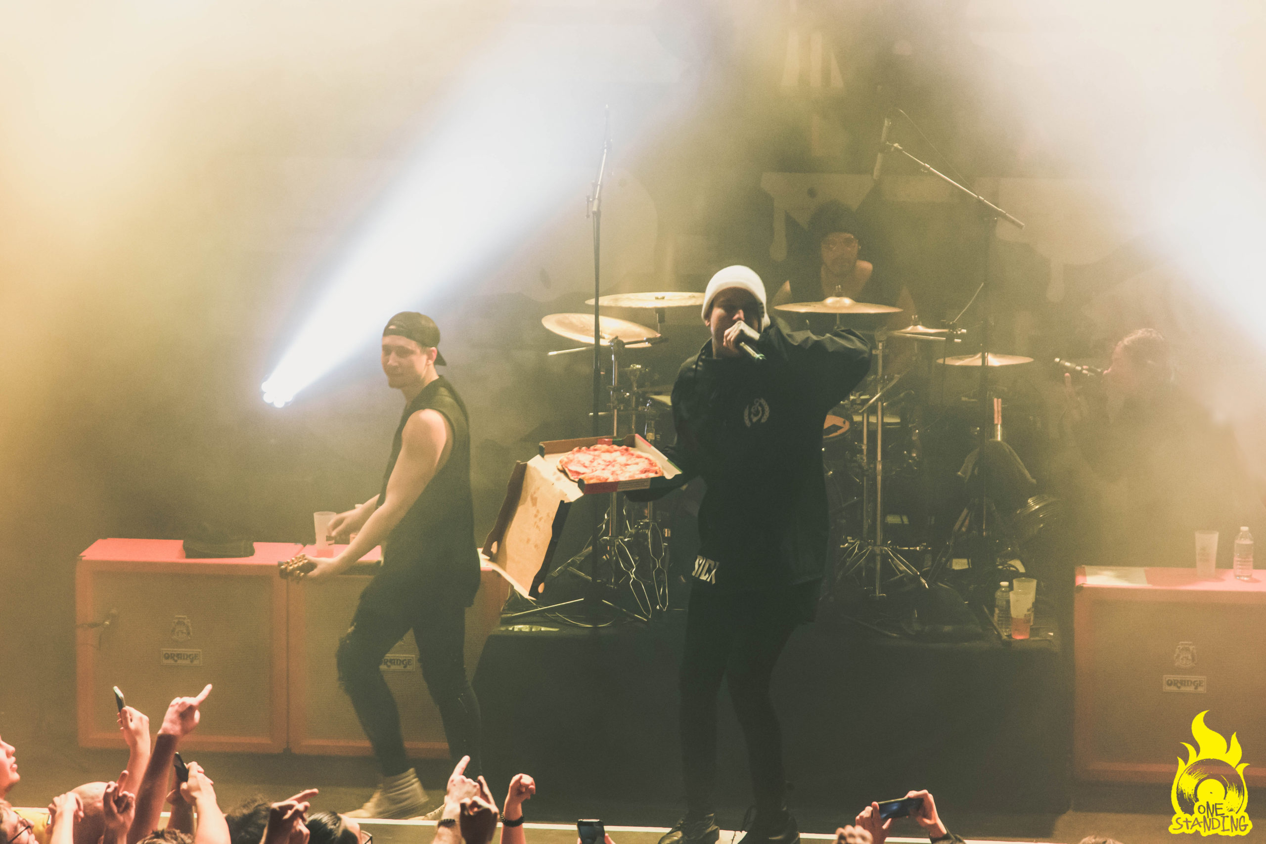 Le set est plutôt cool et est même ajusté à une très bonne durée de 14 chansons, soit environ 1h30, 1h45 si je ne dis pas de bêtise. En rappel, le groupe joue Pizza, la fameuse… Autant je suis très bon public et bon délire, mais selon moi, le fait d’acheter une pizza uniquement pour la défoncer et l’envoyer dans le public n’est pas un geste que j’affectionne. OK, elle est à l’ananas et rien que la préparer devrait être passible d’une lourde amende. Mais si, dans cette même ville, des familles démunies ne dormaient pas dehors, je n’aurais pas autant de ressentiment.